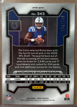 2023 Panini Prizm Anthony Richardson RC Orange Holo #354 164/249