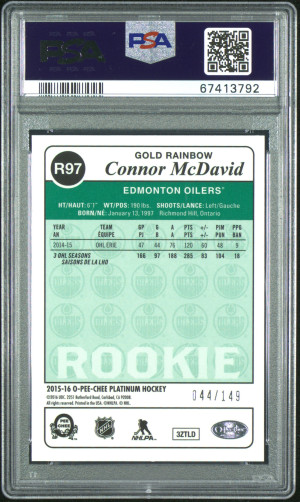 2015 O-Pee-Chee Platinum Retro Connor Mcdavid Retro-Rainbow Gold