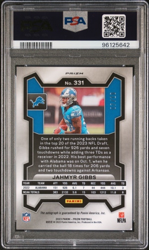2023 Panini Prizm Jahmyr Gibbs Autograph-No Huddle Gold /10