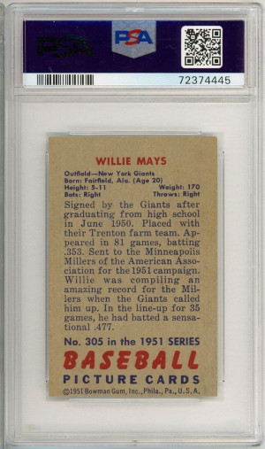1951 Bowman Willie Mays Rookie #305 PSA 5 (MC) P1334