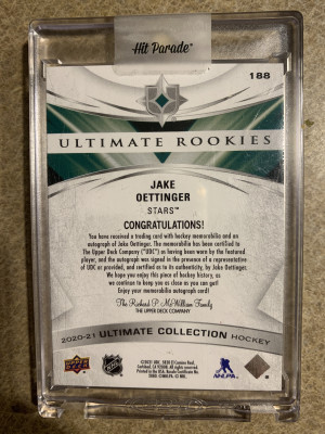 2020-21 Ultimate Rookie Patch Autographed Jake Oettinger 13/99