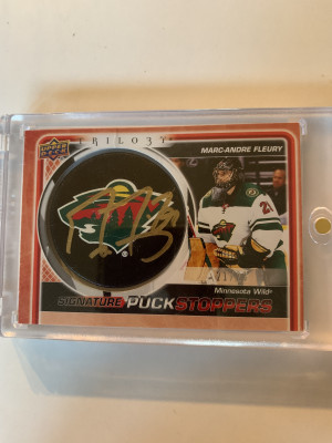2022-23 Trilogy Puck Stoppers Autographed Marc-Andre Fleury 21/23
