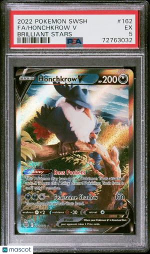 2022 PokéMon TCG Honchkrow V #162 English Full Art Brilliant Stars PSA 5