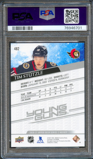 2020 Upper Deck Tim Stutzle Young Guns PSA 10 RC