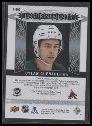 2022 Upper Deck The Cup Dylan Guenther #E-DG Enshrinments Rookie Auto #'d /99