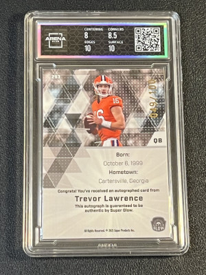 2021 Super Glow Trevor Lawrence First Ever Auto /100 Arena Club 8.5