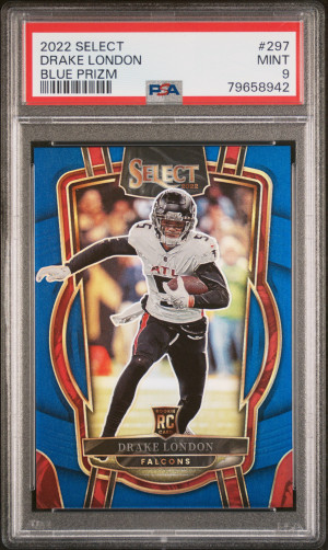 2022 Panini Select Drake London Blue Prizm Rookie PSA 9