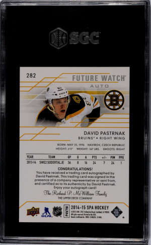 2014-15 Upper Deck SP Authentic David Pastrnak #282 SGC 10