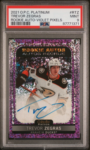 2021 Upper Deck O-Pee-Chee Platinum Rookie Autograph Trevor Zegras Rookie Auto-Violet Pixels