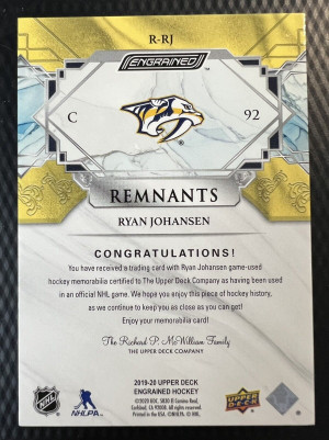 2019-20 UD Engrained Ryan Johansen /100 Engrained Rare Remnants #RRJ Nashville