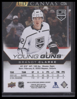 2022 Upper Deck Series 1 Brandt Clarke #C226 Young Guns Black & White Canvas RC