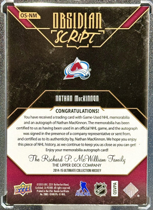 Nathan MacKinnon 2014-15 Ultimate Obsidian Script Patch Auto 15/25