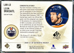 Leon Draisaitl 2020-21 SP Authentic Limited Auto Material Patch Auto 03/25