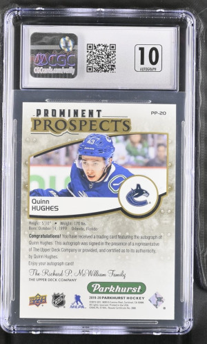 2019-20 Upper Deck Parkhurst Prominent Prospects Autographs #PP-20 Quinn Hughes Gold