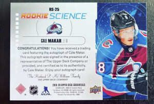 Cale Makar 2019-20 Upper Deck Credentials Rookie Science auto