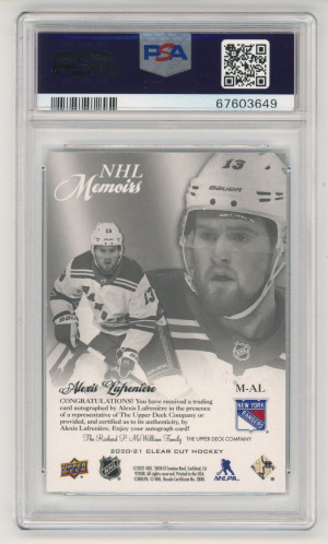 2020 UPPER DECK CLEAR CUT ALEXIS LAFRENIERE NHL MEMOIRS ROOKIE AUTO PSA 10