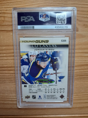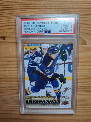 2019-20 Upper Deck Buyback Young Guns Canvas Gold Auto Jordan Kyrou #C225 08/10 PSA 9 Auto 10