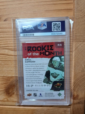 2020-21 Upper Deck Rookie Of The Month Achievements Kirill Kaprizov #R-5 /499 PSA 10