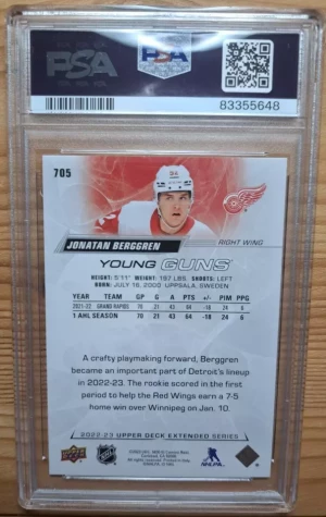 2022-23 Upper Deck Extended Series Young Guns Jonatan Berggren #705 PSA 10