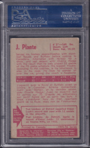 JACQUES PLANTE - 1955 Parkhurst ROOKIE #50, PSA 4