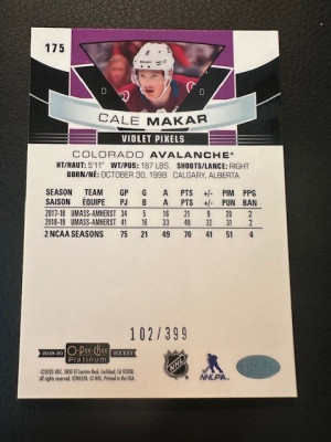 2019 OPC Platinum - Cale Makar - Violet Pixels /399 - Marquee Rookie