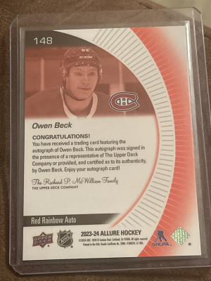2023-24 Upper Deck Allure Rookies Red Rainbow Owen Beck #148 Rookie Auto RC