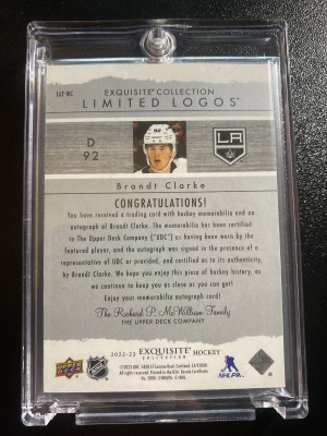 Brandt Clarke 22-23 Exquisite Limited Logos Patch Auto /50