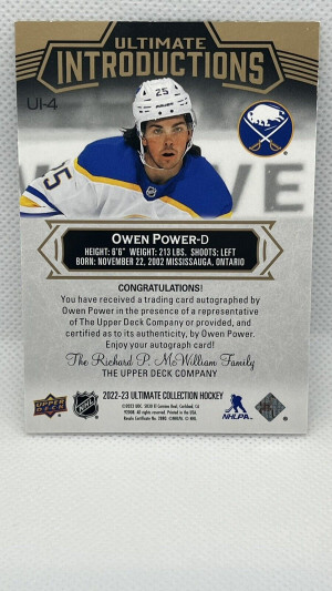Owen Power 2022-23 Ultimate Collection Ultimate Introductions Auto #UI-4 /25