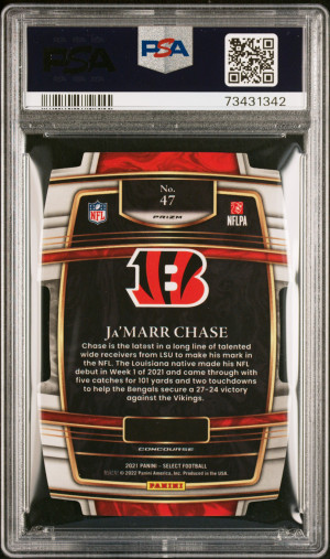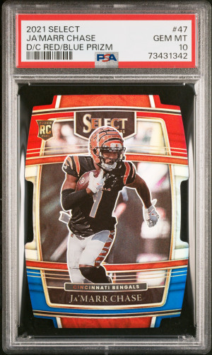 2021 Panini Select Ja'marr Chase Die Cut Red/Blue Prizm PSA 10