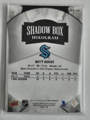 22-23 SPX Matty Beniers SB-32 Shadow Box Hologram Rookie Seattle Kraken