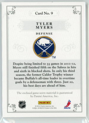 2011-12 Dominion #9 Tyler Myers Jersey Prime 9/25