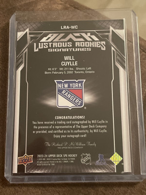 2023-24 Upper Deck SPX Black Lustrous Autograph Auto #WC Will Cuylle 117/199 RC