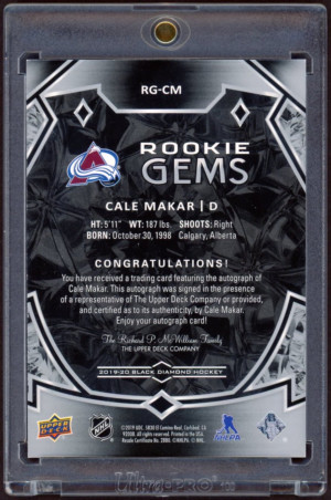 2019-20 Upper Deck UD Black Diamond Rookie Gems Pure Black Sigs RG-CM Cale Makar /99