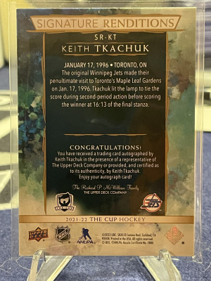 2021 UPPER DECK THE CUP KEITH TKACHUK SIGNATURE RENDITIONS AUTO #SR-KT