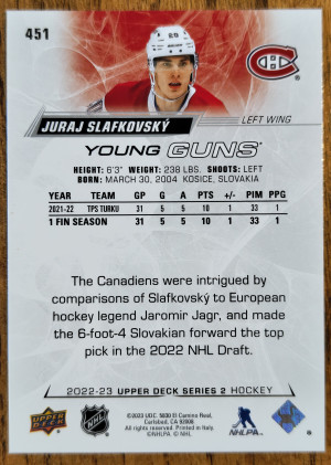 2022-23 UD Series 2 Juraj Slafkovsky YG