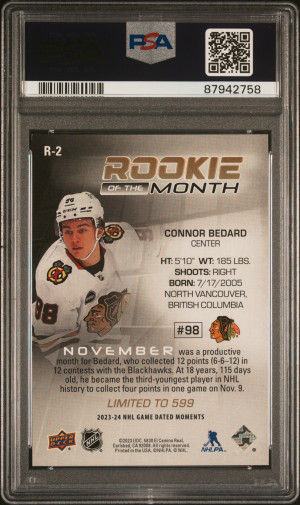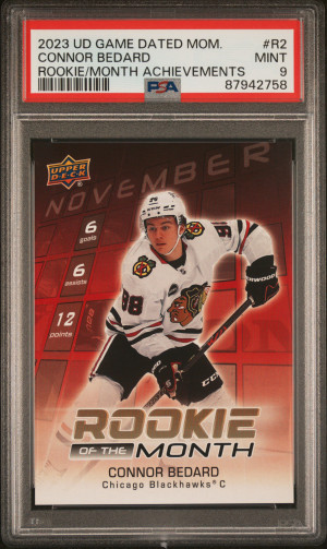 2023 Upper Deck Game Dated Moments Rookie Of The Month Achievements Connor Bedard, Nov 2023