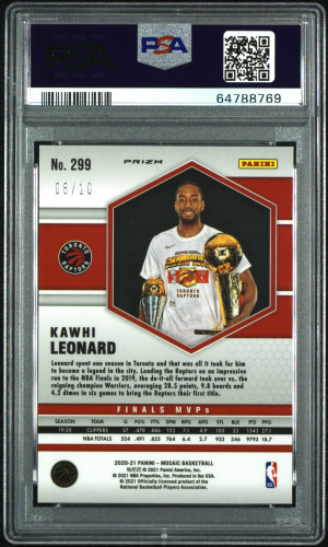 2020 Panini Mosaic Kawhi Leonard #299 Fast Break Gold /10 PSA 10 POP 1 raptors