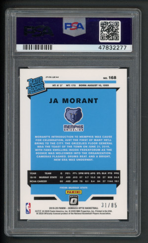 2019 Optic #168 Ja Morant Rated Rookie Fast Break Red /85 PSA 10