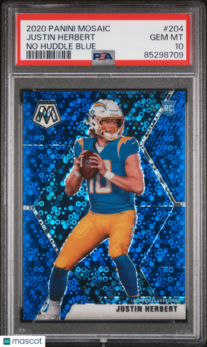 2020 Panini Mosaic #204 Justin Herbert No Huddle Blue /75 PSA 10