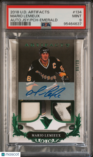 2018 Upper Deck Artifacts Mario Lemieux #134 Patch Auto /10 Emerald PSA 9 POP 1