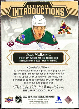 Jack McBain 2022-23 Ultimate Introductions Auto 1/1