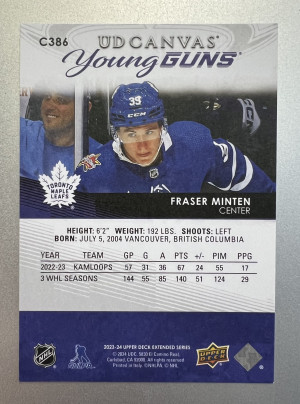 2023 Upper Deck Fraser Minten #C386 Rookie