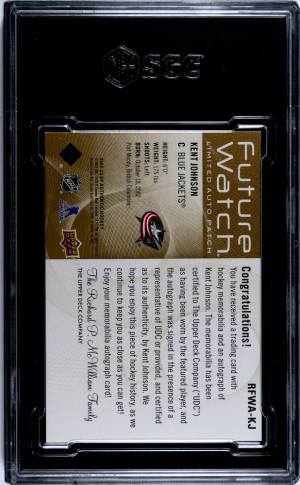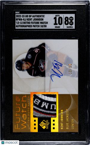 2022-23 Upper Deck SP Authentic Kent Johnson Future Watch Auto Patch /50 SGC 8