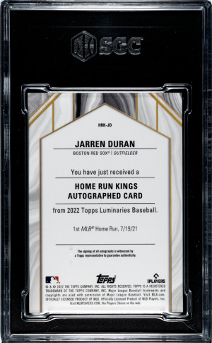 2022 Topps Luminaries Jarren Duran Home Run Kings Auto Red 9/10 #HRK-JD SGC 9.5