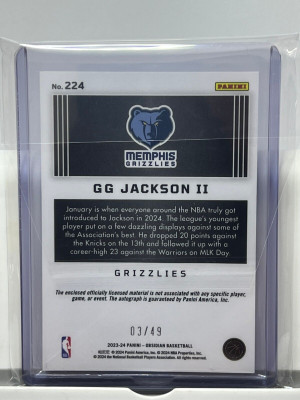 2023-24 Panini Obsidian GG Jackson II RPA Auto Purple /49 3 Color Patch