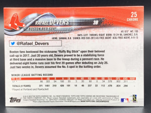 Rafael Devers - 2018 Topps Chrome Image Variation Rookie Card - Running out of dugout. Card Number: 25
