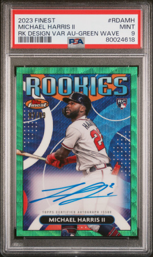 2023 Topps Finest Finest Rookies Design Variation Autographs Michael Harris II Green Wave /99 PSA 9