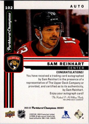 Parkhurst Champions Base Autographs Sam Reinhart #102 AUTO