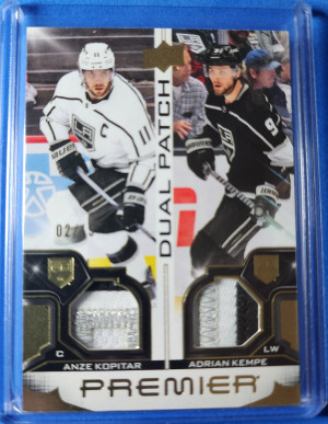 2022-23 Upper Deck Premier Dual Patch Anze Kopitar, Adrian Kempe /15 (3 color)