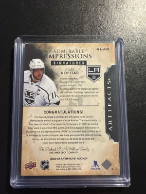 2023-24 Artifacts Admirable Impressions Signatures Anze Kopitar /24